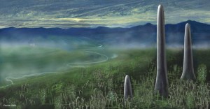 The art comes from an article here about giant tree-size fungus from the Devonian. It’s “A rendering of Prototaxites as it may have looked during the early Devonian Period, approximately 400 million years ago. Painting by Mary Parrish, National Museum of Natural History.”