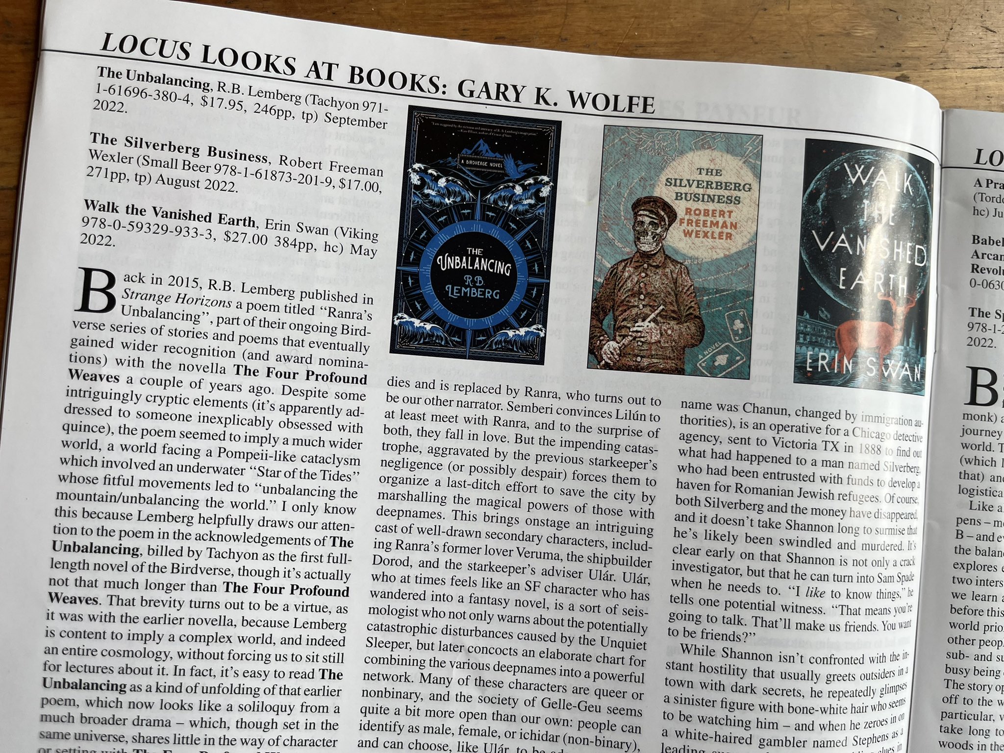 If you have the means, please consider making a charitable contribution to Locus this year, whether a one-time or monthly contribution, we really want to keep making the magazine, and we are under the gun right now. We also have a Locus Legacy Society for people who would like to name Locus Science Fiction Foundation in their will, you can find out more information about that on our donate page.